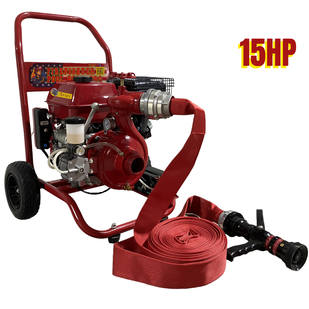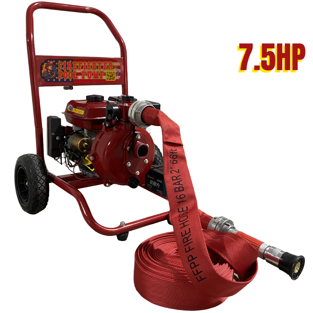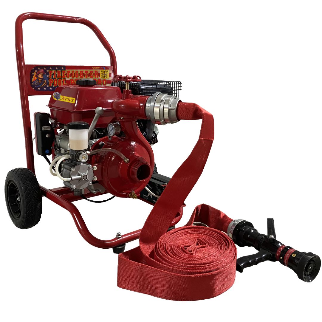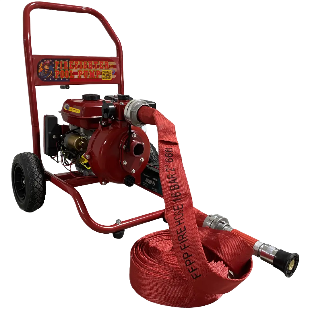 Everything you need, when you need it most. At the heart of every Firefighter Pool Pump is a rugged Aries™ 4-stroke OHV engine — engineered for dependable power when it matters most. Each unit arrives fully equipped with hose, nozzle, suction line, transport trolley, and weather-resistant cover, so you’re ready to act fast.